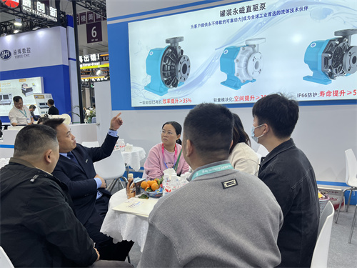 开展三日,杰凯流体展位始终人气汇聚。我们重点展示了新品MGV罐装永磁直驱泵,这款专为泛半导体、储能、光伏等行业打造的化工泵,吸引了大量电路板生产厂商、设备集成商及技术决策者的驻足咨询。