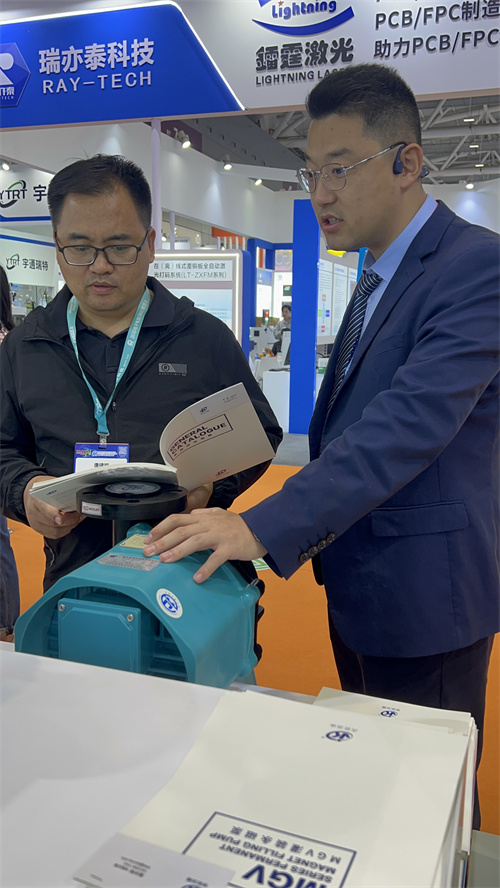 开展三日,杰凯流体展位始终人气汇聚。我们重点展示了新品MGV罐装永磁直驱泵,这款专为泛半导体、储能、光伏等行业打造的化工泵,吸引了大量电路板生产厂商、设备集成商及技术决策者的驻足咨询。
